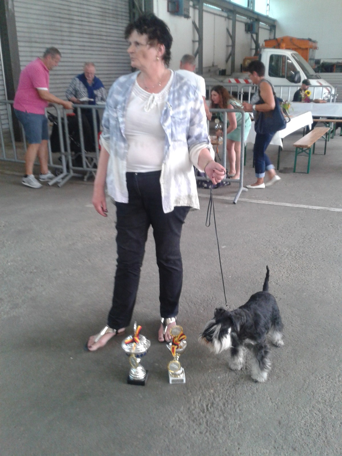 So, heute waren super nette Leute hier, die mich haben möchten. Oma Romy hat sie genau begutachtet und ist der Meinung "Die sind goldrichtig für die Kleine Maus". Den genauen Namen legen sie noch fest. Ich werde in das schöne Iserlohn umziehen und dort mein Unwesen treiben. Mein neues Frauchen kann ganz toll schmusen sagt Oma Romy und ich soll gut auf Frauchen aufpassen. Haha!!! Ich hab das grosse Los gezogen. Ich darf bei Oma Romy, meiner Mamma und ihren Geschwistern bleiben. Das wird ein Leben werden. Wir, die Rasselbande wünscht schon mal den anderen viel Glück und viel Spass. 07.09.2017 Puuuh, das war anstrengend!!! Gestern hat Frauchen uns das erste Mal richtig frisiert. Jetzt wissen wir, wie sich die Schermaschine anhört, und dass wir uns dabei schön ruhig verhalten müssen, damit Frauchen uns richtig schön machen kann. Wir sehen doch tatsächlich unseren grossen Geschwistern ähnlich. Nachmittags waren wir dann bei der Tierärztin. Die hat uns untersucht und war sehr mit uns zufrieden. Wir bekamen dann unsere Impfung und den Chip. Keiner von uns hat gejammert, wir sind eben eine coole Truppe, sehr unempfindlich. Die Ausweise sind jetzt auch fertig, somit ist fast alles für den Umzug zu unseren neuen Leuten erledigt. Am 08.09. 2017 kommt dann noch die Zuchtwartin, die ist unheimlich nett, sie prüft, ob auch alles so ist, wie es bei uns Schnauzern halt sein soll. Frauchen hat schon mal selber kontrolliert und ist sicher: Es ist alles okay! Heute haben wir noch wieder neue Fotos geschossen.